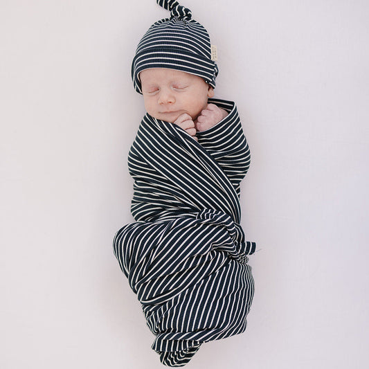 Mebie Baby Ribbed Bamboo Stretch Swaddle – Navy Stripes
