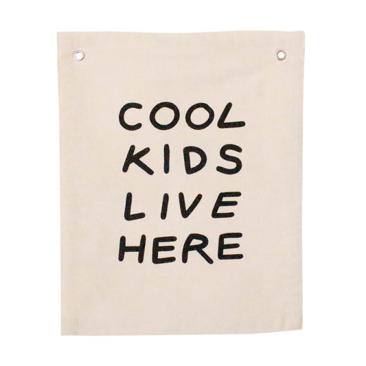 Regular price $26.00 USDRegular priceUnit price / perSale price $26.00 USDImani + Kids โCool Kids Live Hereโ Canvas Wall Banner โ Natural or Taupe