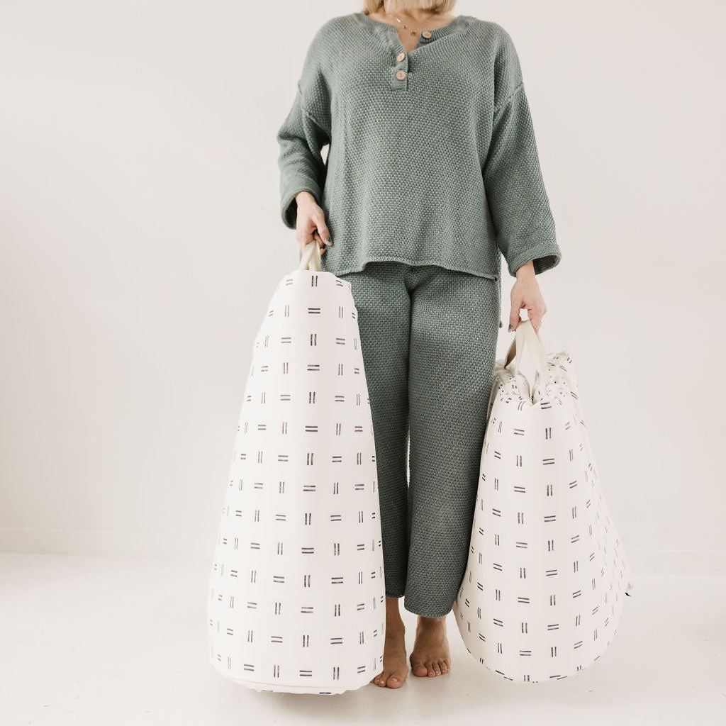 An ultra comfy, mess-proof play mat for tummy time and soft seating inside, outside, or wherever you go.